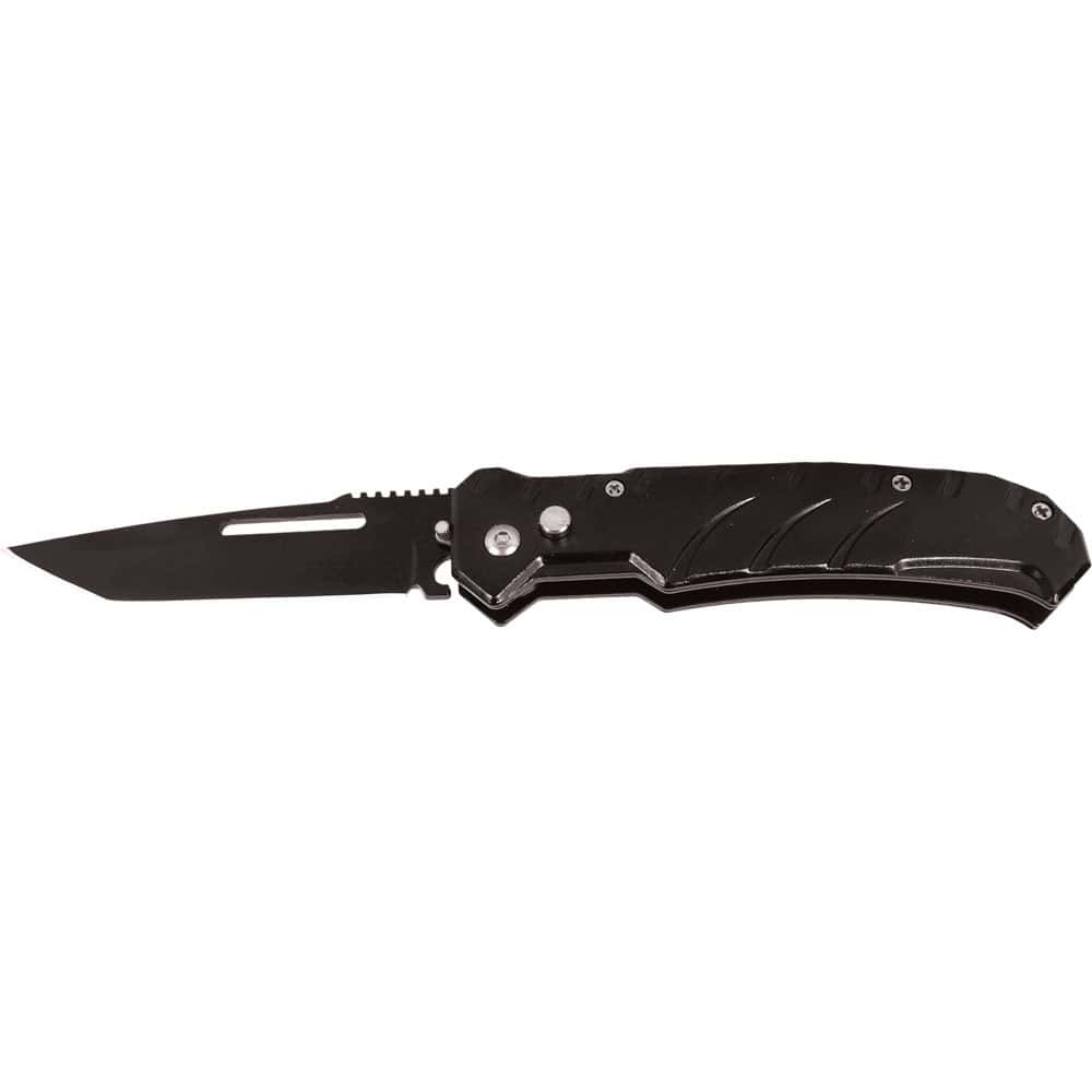 Automatic Heavy Duty Knife with solid handle and safety lock. Black Color