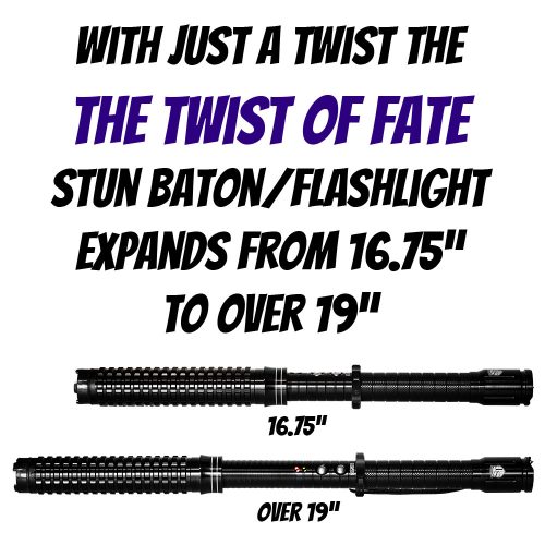 The Twist of Fate from Safety Technology is a full-aluminum, rechargeable stun baton that extends with a simple twist, taking you from 16¾” to over 19″ of striking distance in seconds. Designed for serious personal protection, it combines an ultra-bright flashlight with a devastating 70 million volt stun discharge, backed by Triple Stun Technology to send attackers running before they ever touch you.